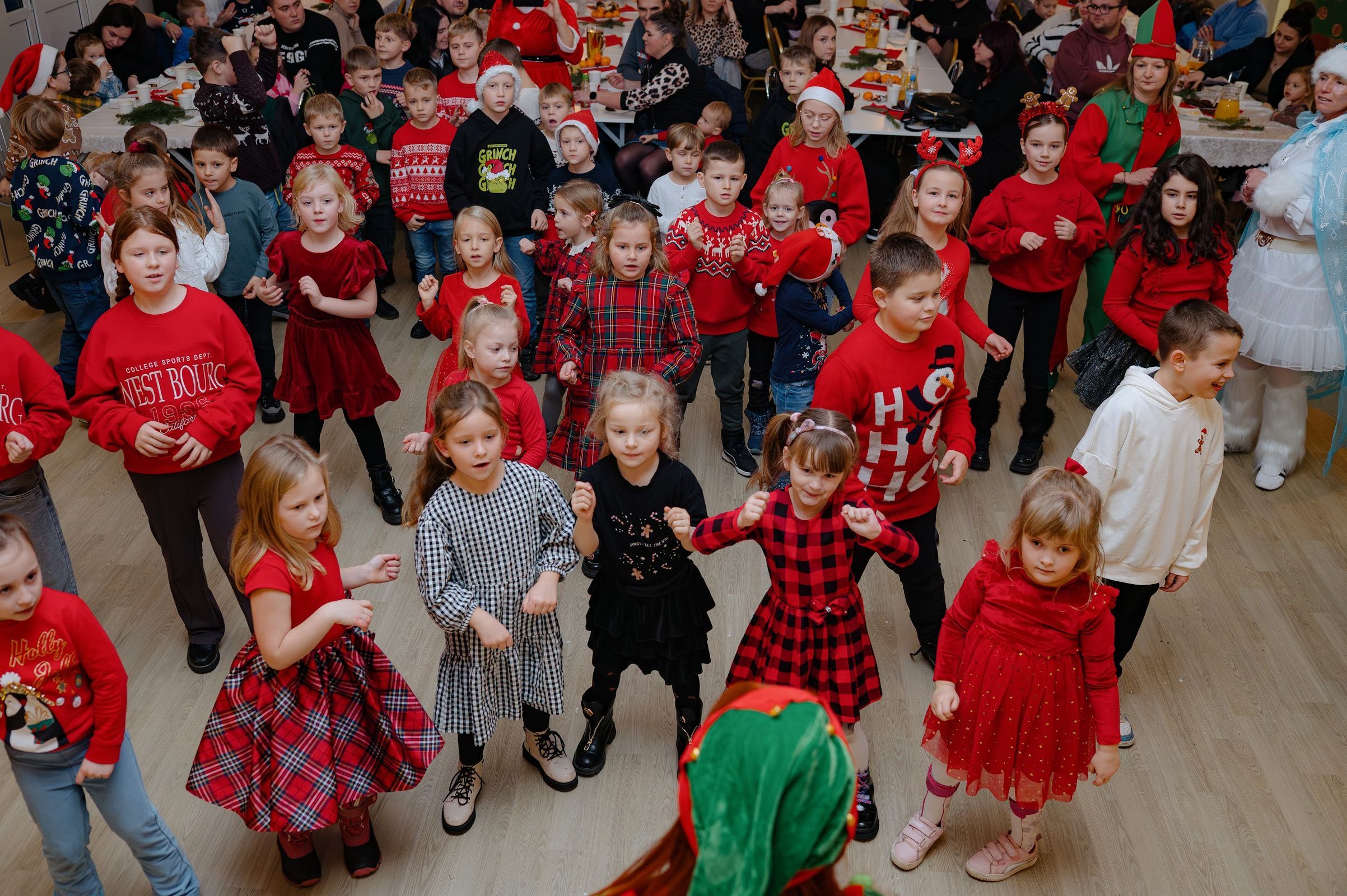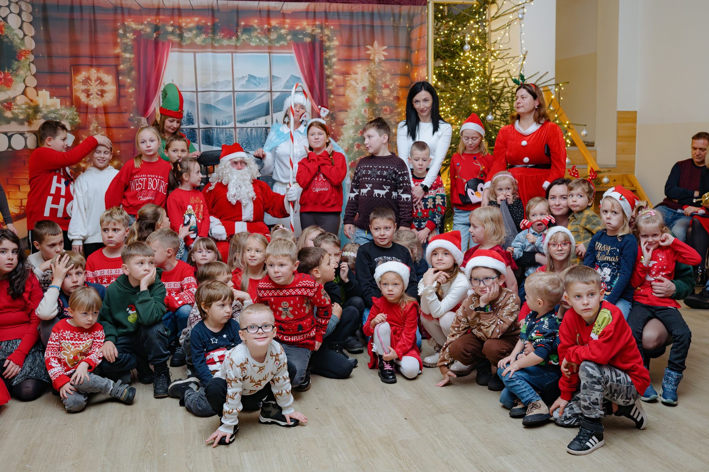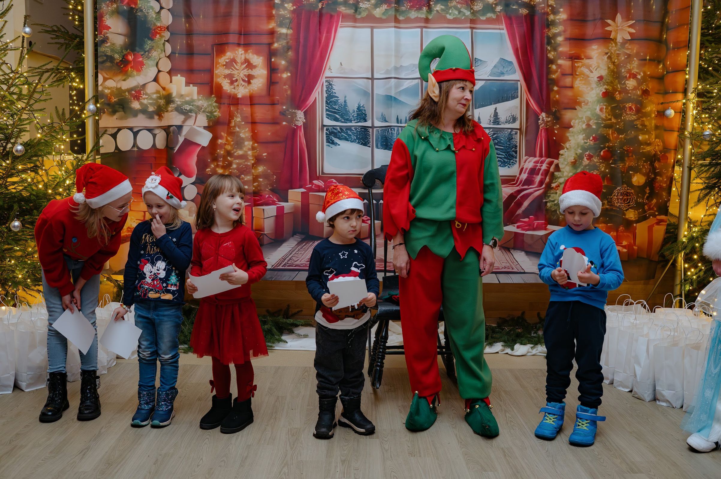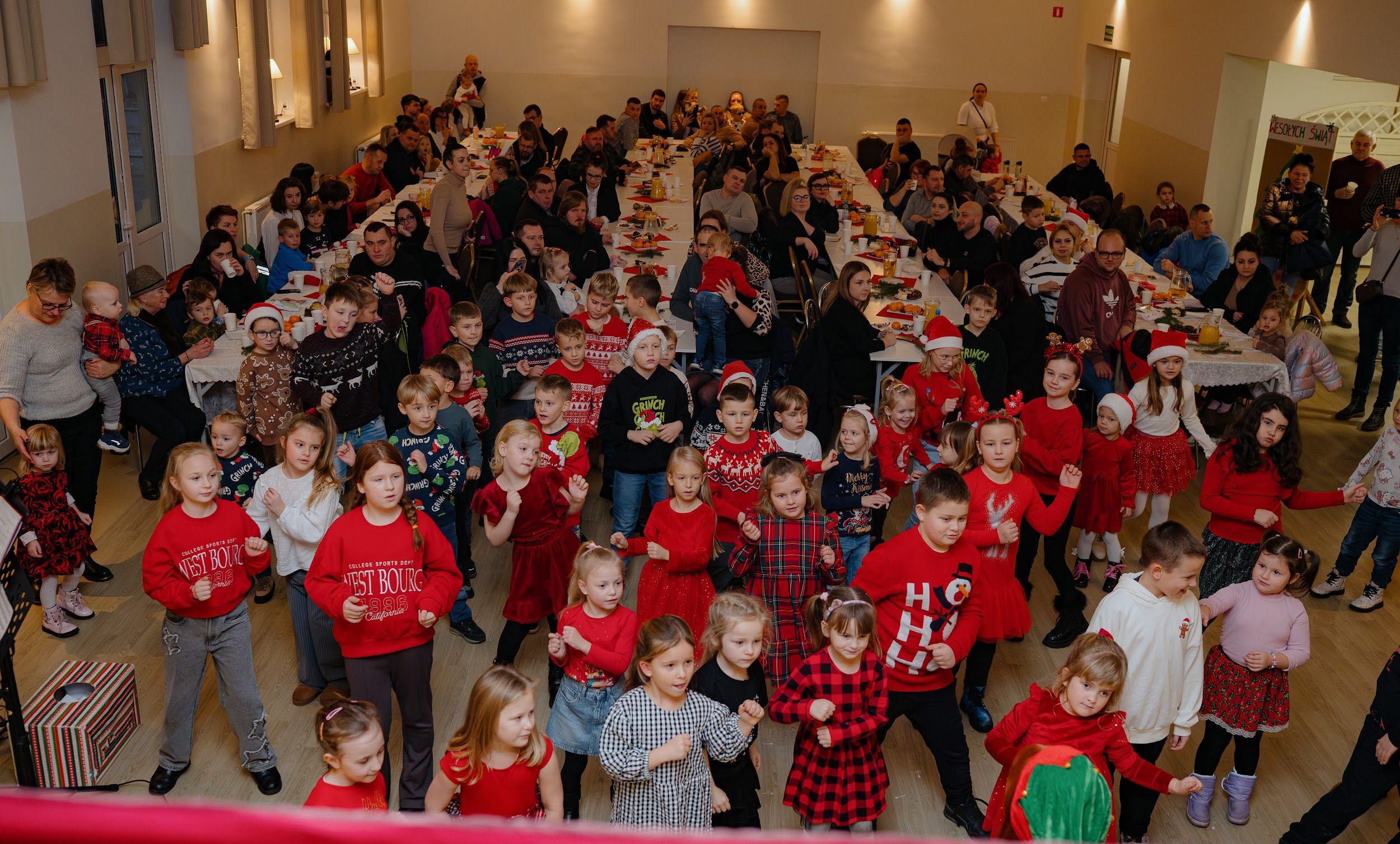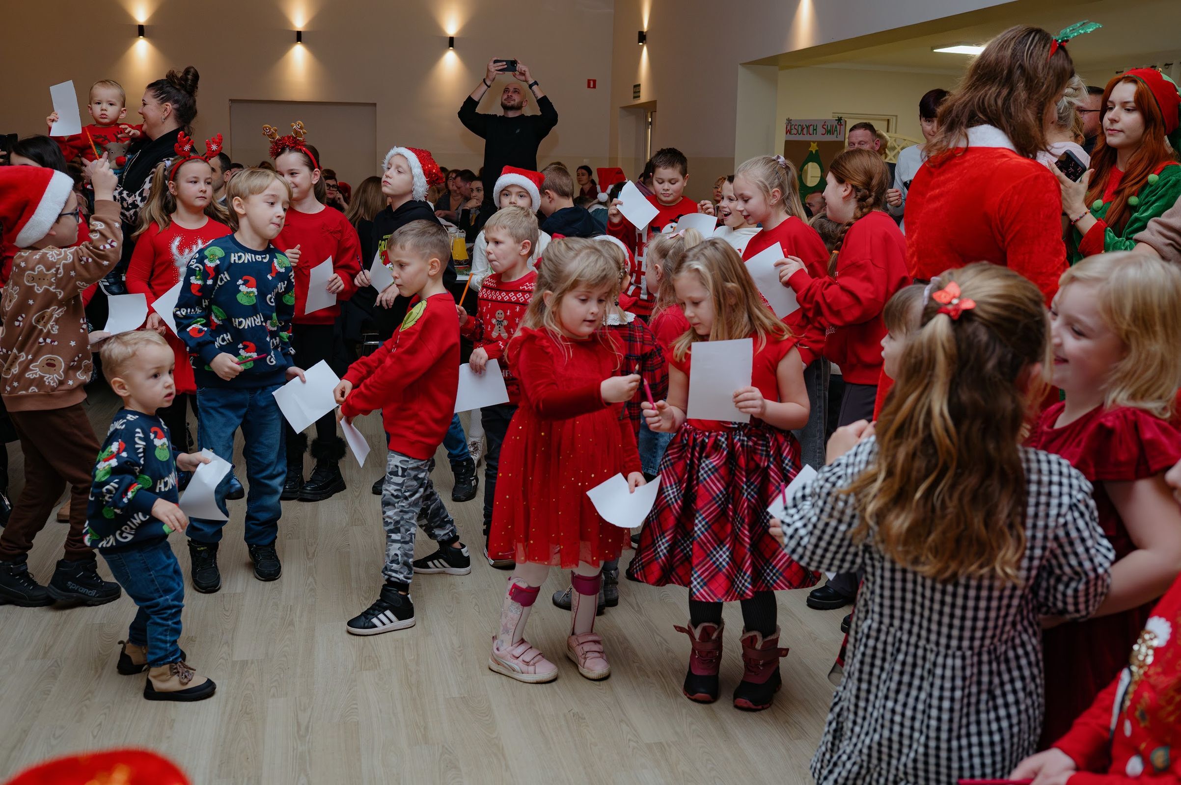 Po pojawieniu sie na sali, święty Mikołaj rozdał 90 paczuszek, a sam otrzymał podarunek i głośne kochamy Cię Mikołaju – od dzieci.