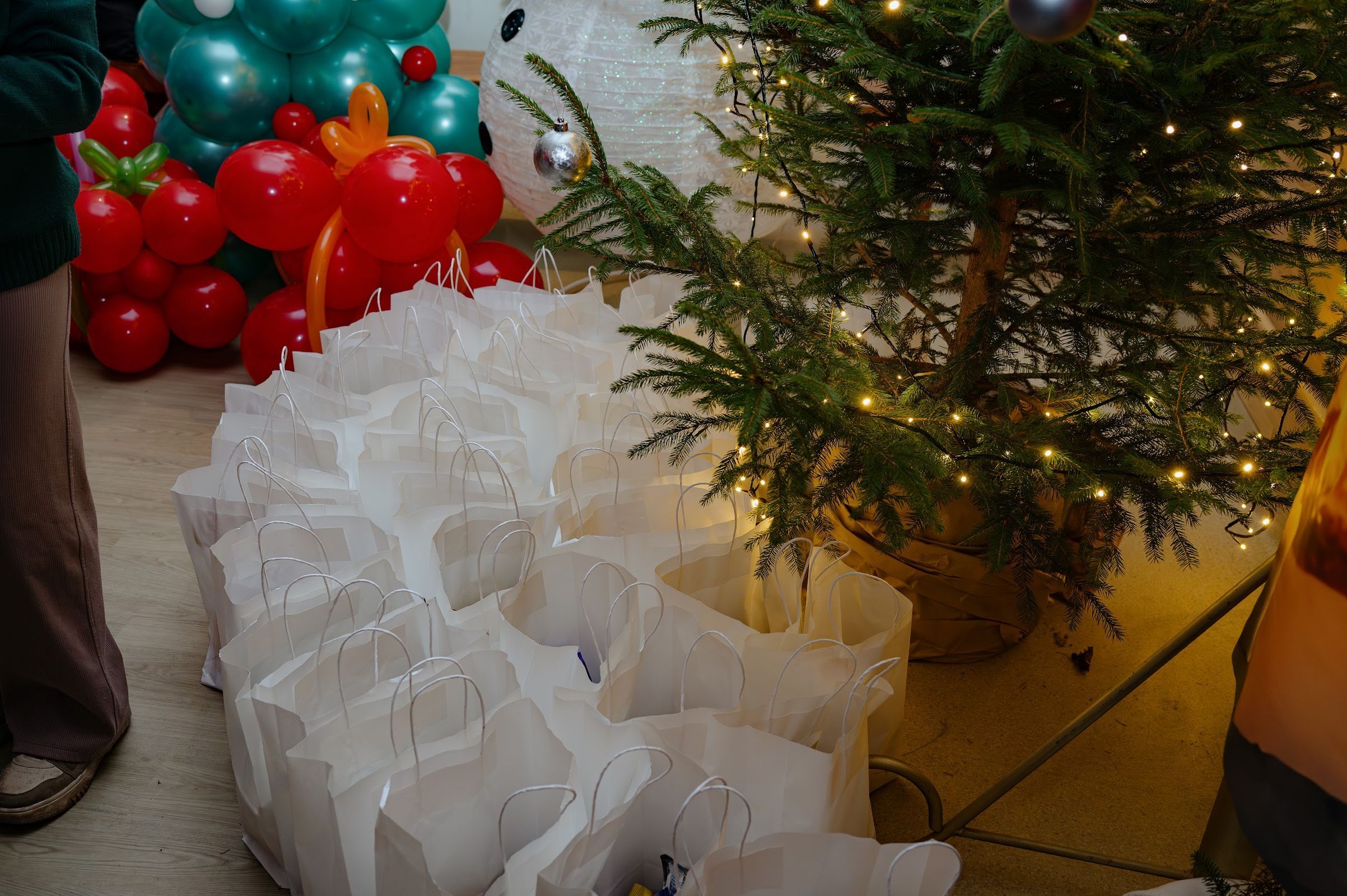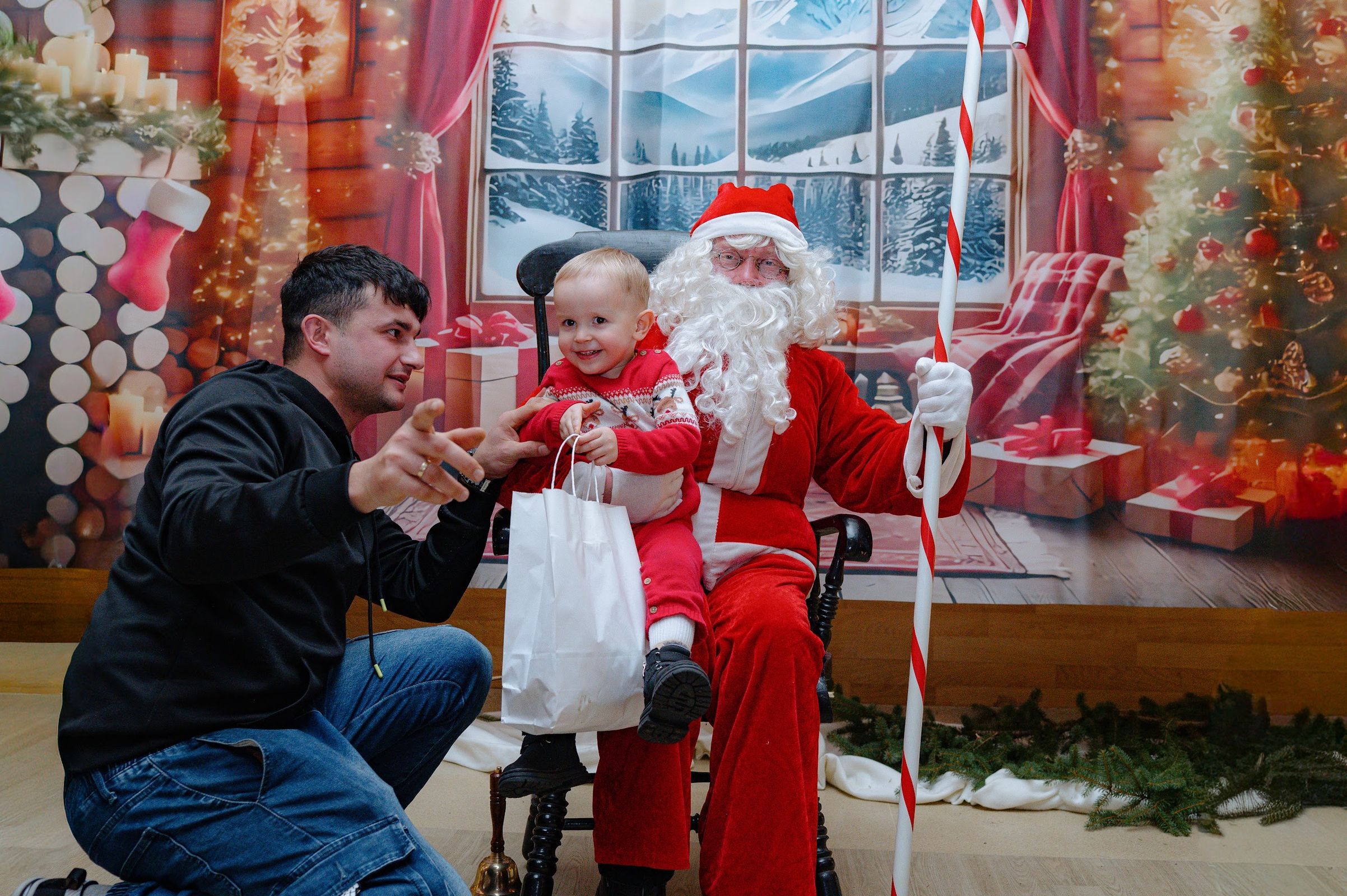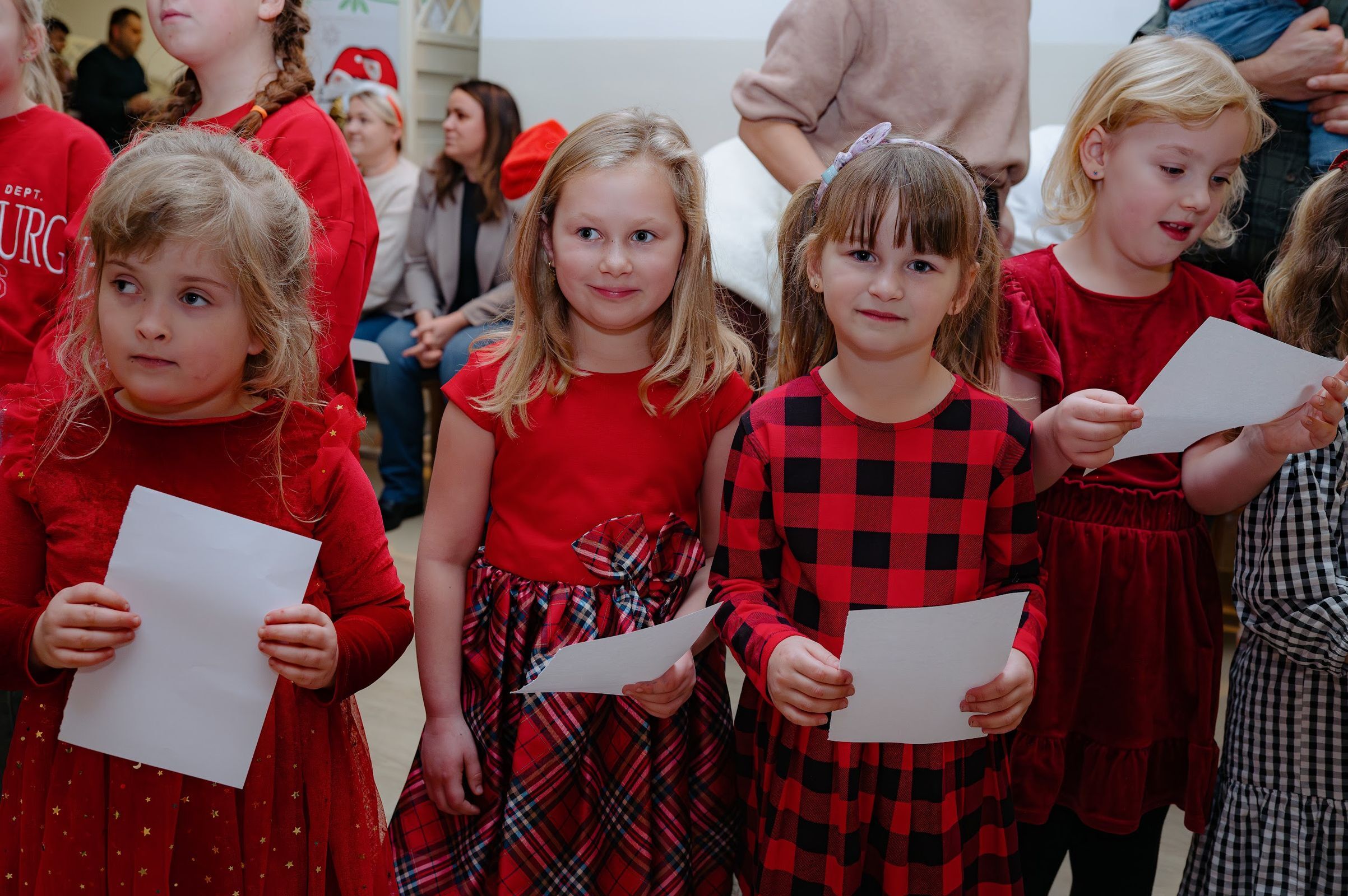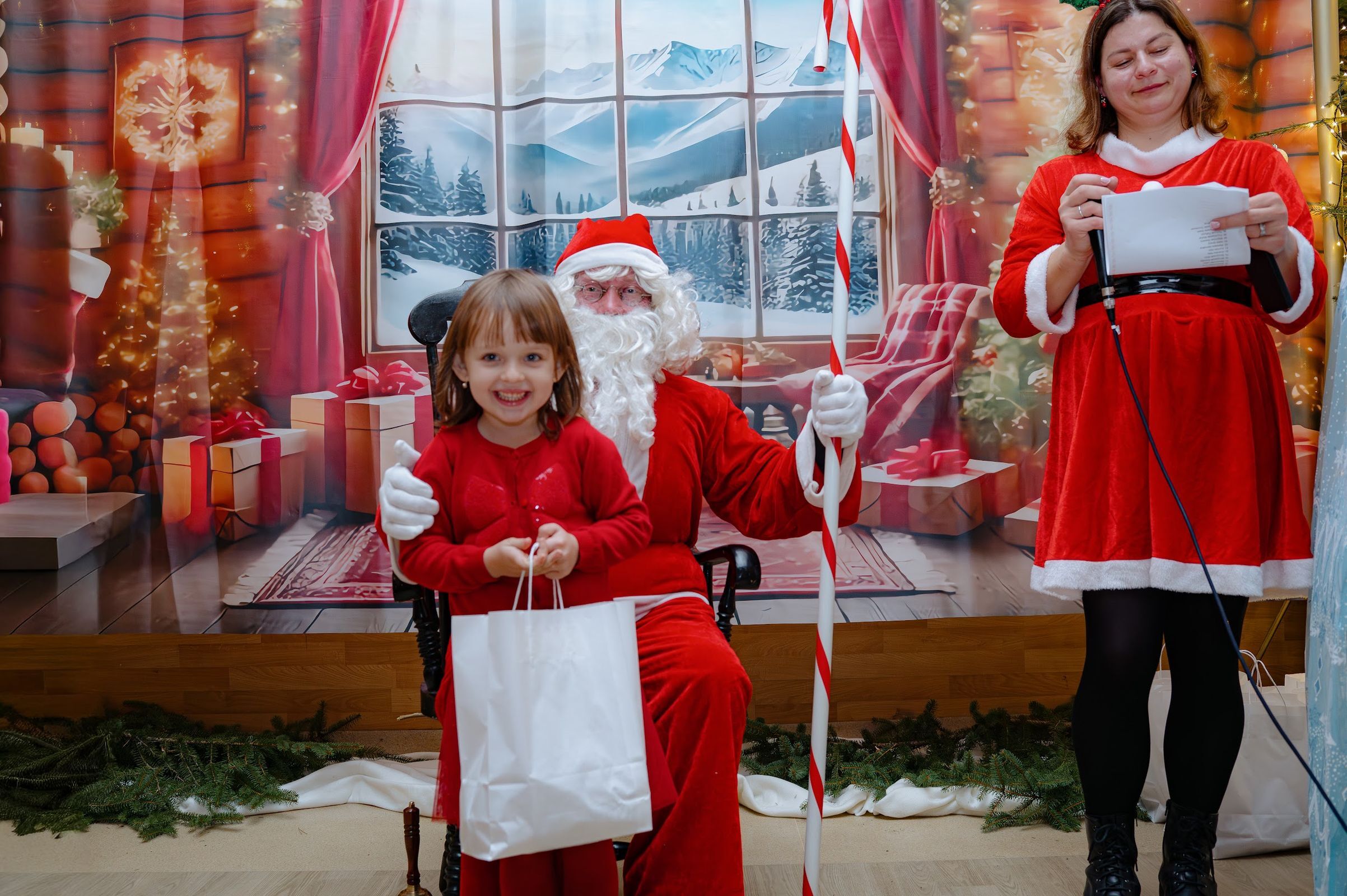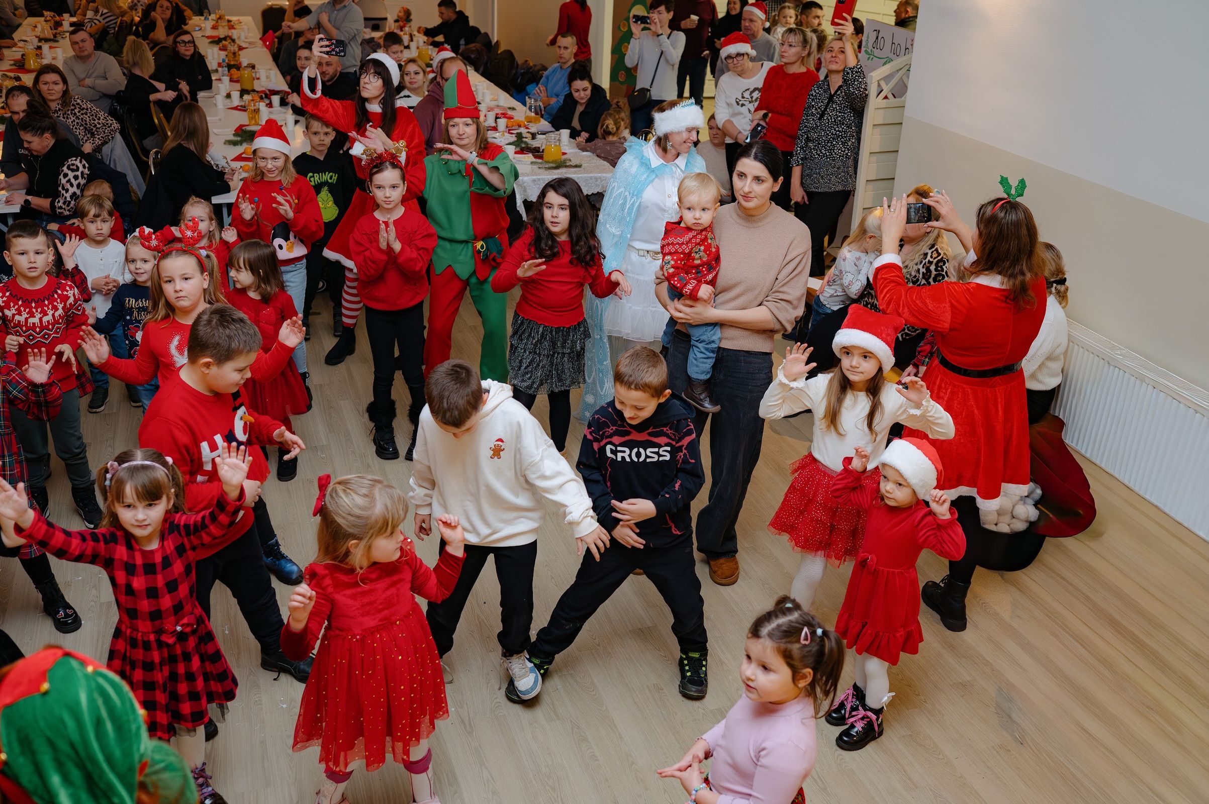 Po pojawieniu sie na sali, święty Mikołaj rozdał 90 paczuszek, a sam otrzymał podarunek i głośne kochamy Cię Mikołaju – od dzieci.