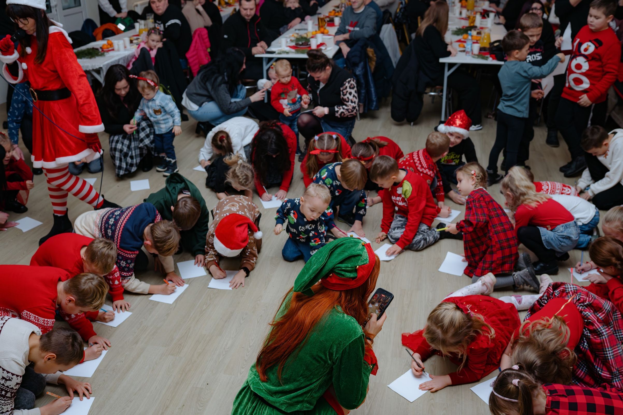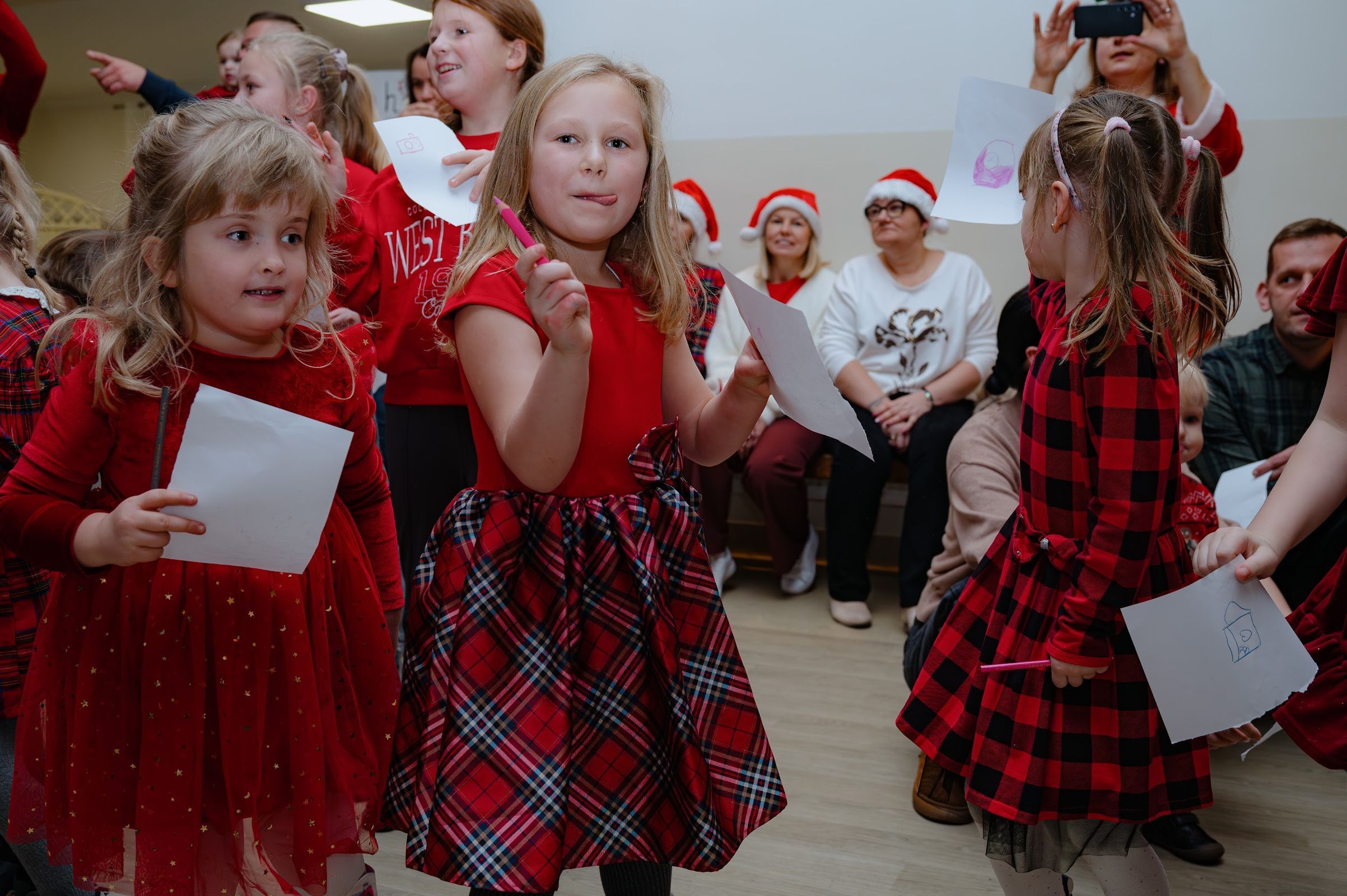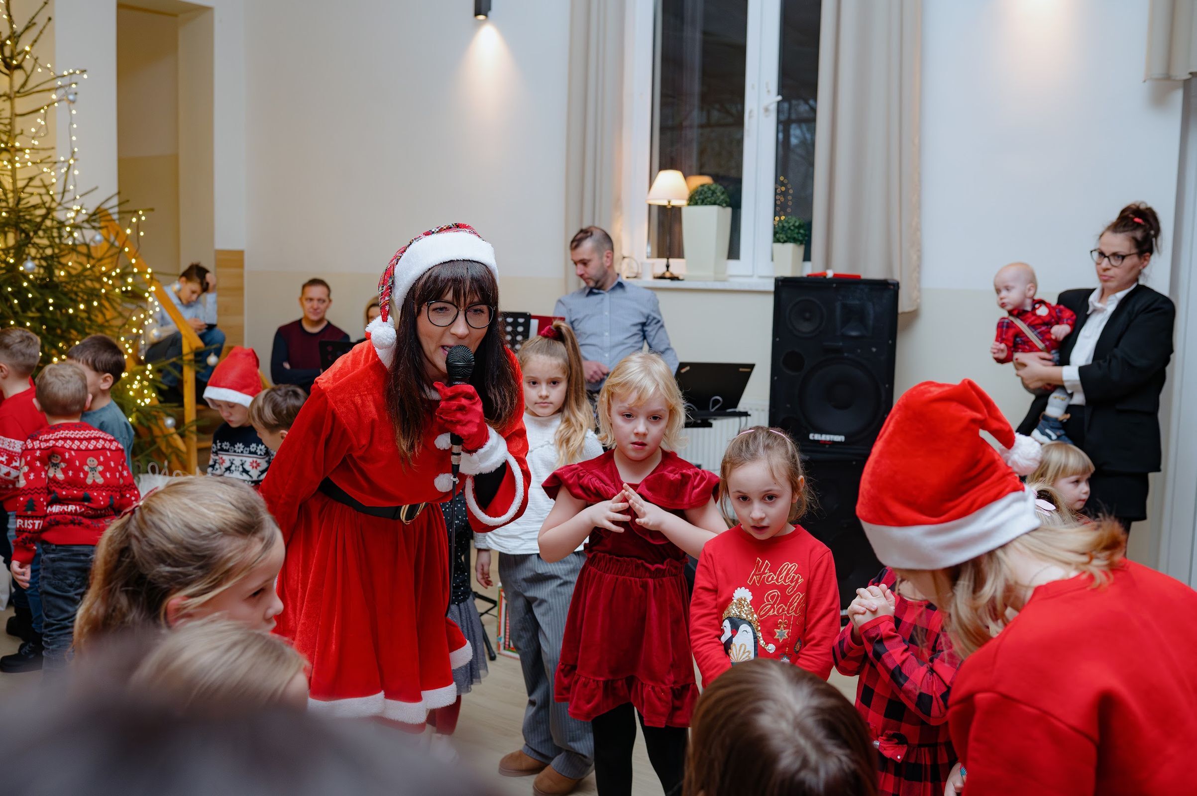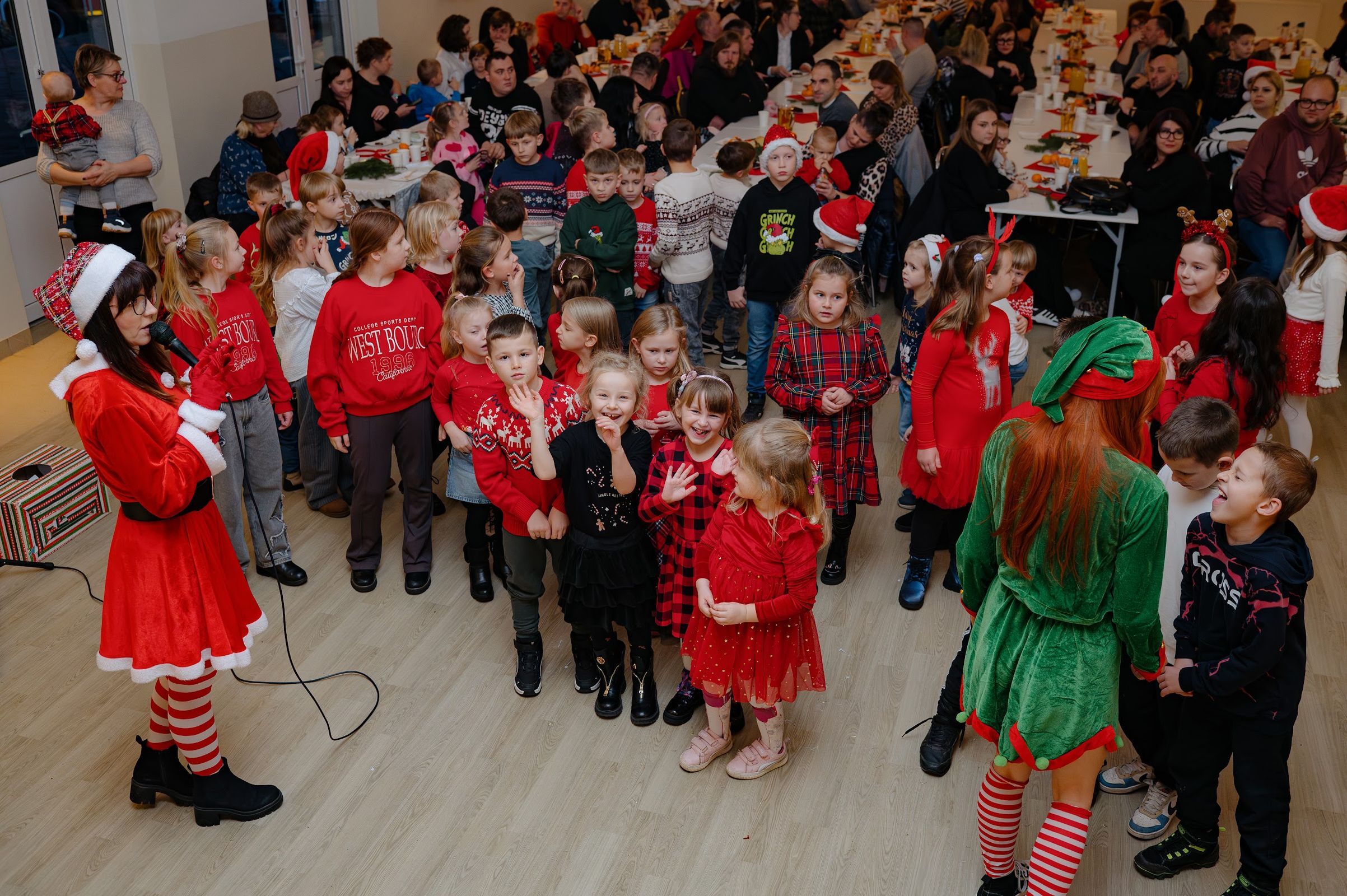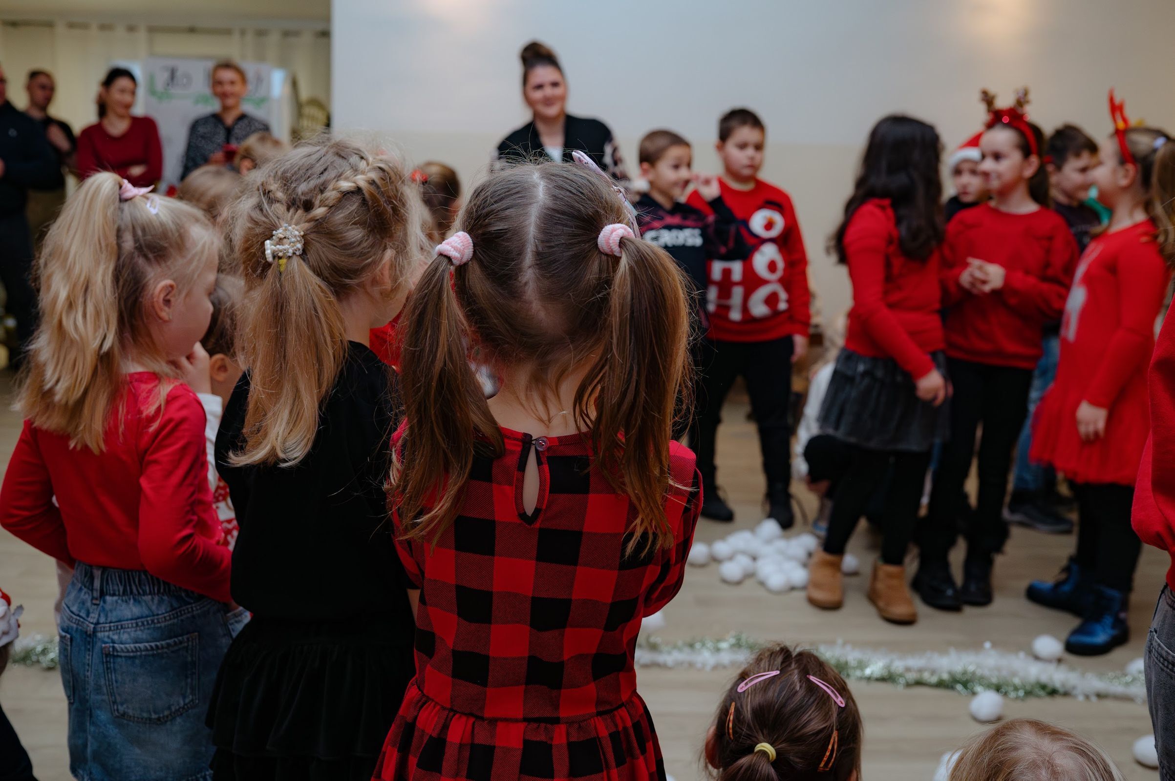 Po oficjalnym powitaniu przez sołtysa, czas oczekiwania na przybycie świętego Mikołaja umilały zabawy z "Powiedz Akuku" oraz z Panią Jolą.